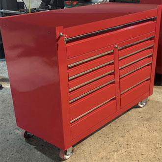 Tủ đồ nghề 11 ngăn kéo có bánh xe tiện di chuyển. Đây là loại tủ đựng đồ nghề thông dụng và được sử dụng nhiều trong các tiệm sửa chữa xe máy hay trung tâm bảo dưỡng, bảo trì ô tô hoặc tại các nhà máy, xưởng sản xuất. Tủ 11 ngăn được gia công chắc chắn và lắp rắp tại Việt Nam.